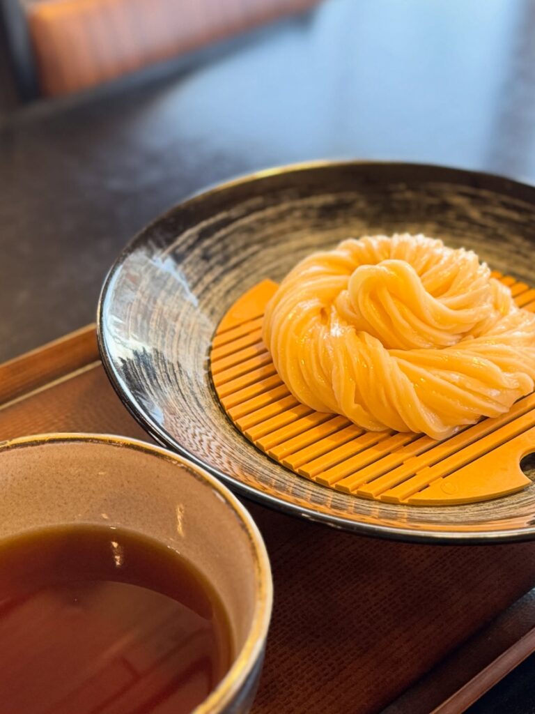 つるつる食感とコシの強い麺、天然素材の出汁が絶妙にマッチ。